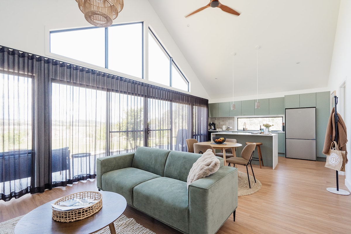 Welcome to Carinya Byron Bay, a peaceful collection of six eco-conscious villas in the hinterland. Tucked away in Talofa, we’re just a 10-minute drive from vibrant Byron Bay and 5 minutes from the charming village of Bangalow. Each villa has its own outlook some stretching across the hills, others nestled into the trees - always surrounded by bushland and wildlife. Think cows wandering by, birds at dusk, and unforgettable sunsets from your deck, with beaches and cafes just a short drive away.