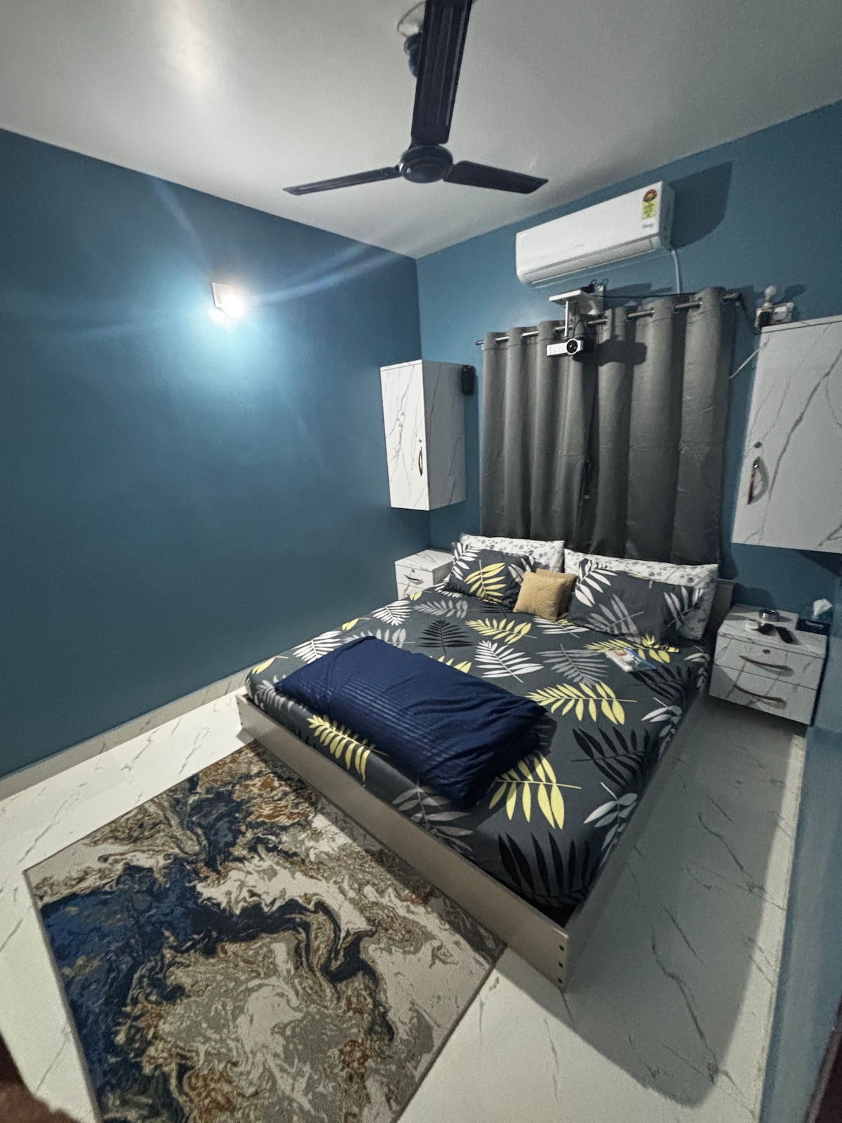Note- Unmarried couples aren’t allowed. Forget your worries in this spacious and serene villa.You will notice a glimpse of Bengal at this place. It has a living room with a 6 seater sofa,center table,Bluetooth music player & washbasin passage. Big kitchen with gas oven,microwave,toaster,utensils, pressure cooker,fridge & dinning table with chairs. 1 washroom with geyser.2 bedrooms with two ACs, 2 doublebeds, wardrobes,2 side tables,a TV & a work corner with office chair & table.(High speed WiFi)