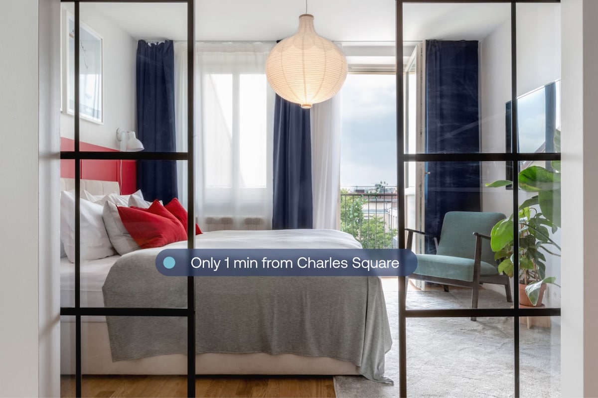 Discover Prague's historic center, enjoy Czech cuisine, museums, and theaters just a few steps from our newly designed Charles Square apartments. ➤ Hyper-responsive support ➤ 1-min walk from tram stop ➤ 5-min walk from Karlovo Namesti park ➤ Smart TV with Netflix ➤ Fully-equipped kitchen ➤ Late check-out available until 1pm Your home is close to Wenceslas Square, Namesti Miru Cathedral, Dancing House, Traditional Czech Pubs, Beer Spa, and Church of St. Katherine of Alexandria