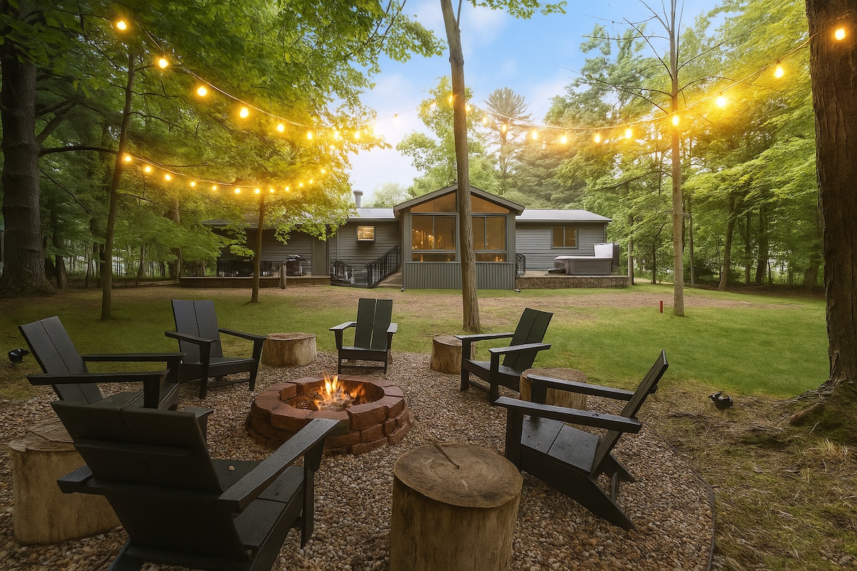 密歇根州湖畔沙丘附近的乡村小屋度假屋,带火坑