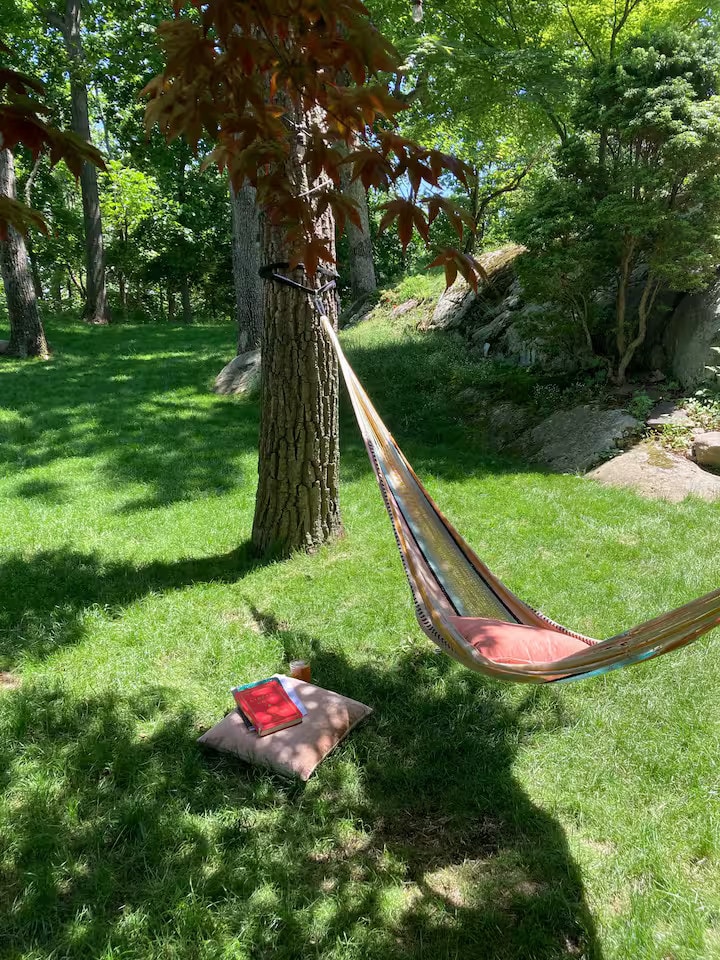 A half hour from Manhattan, transport yourself here, where you can choose among outdoor cocktail venues, fall asleep on the hammock beneath the dapple of a Japanese maple, or take an outdoor shower after running through the trail system next door. Upstairs, you'll find three pleasing bedrooms and an aerie-like living and dining space, cooled by ceiling fans, windows, and zoned mini splits. Downstairs, where it stays cooler, and new guest suite and more places to work or sprawl.