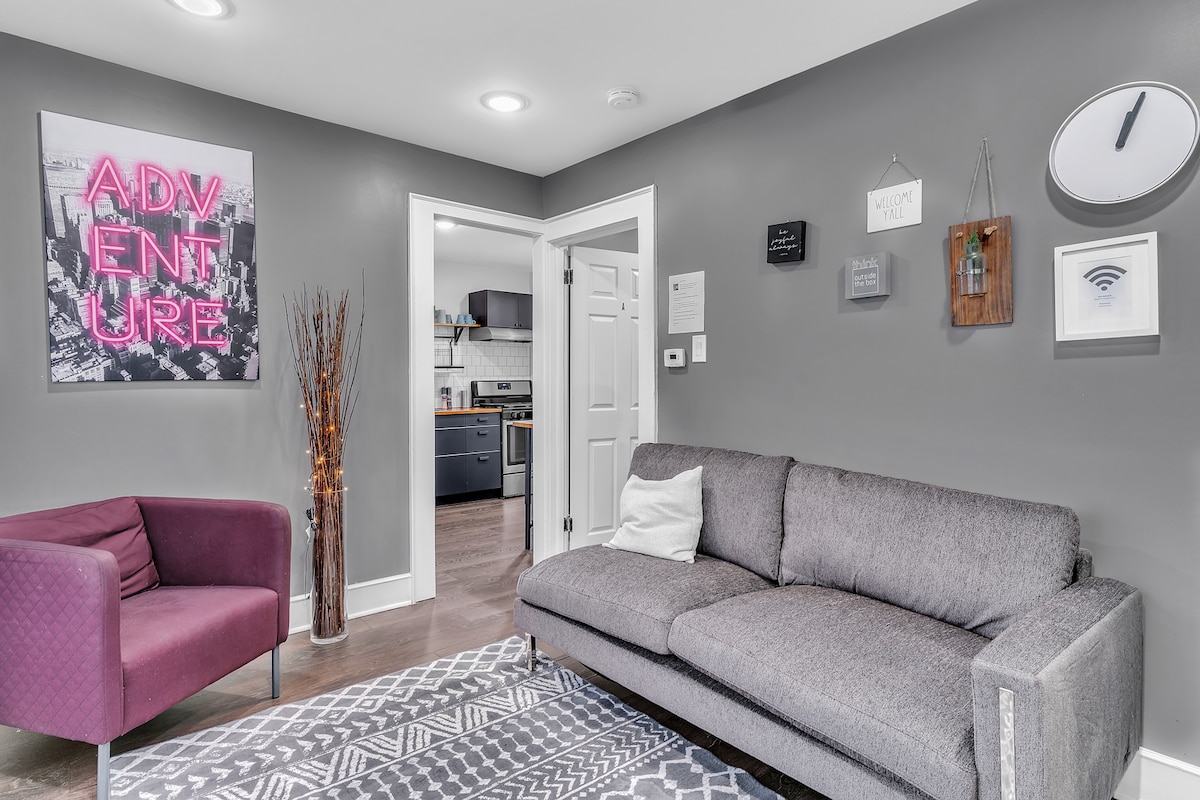 Modern 2BR in vibrant Harrison—14-min walk to PATH for easy NYC access! Soaring ceilings and natural light enhance the space. Relax with plush comforters, soft sheets, and Smart TVs in every room. Perfect for families, remote workers, or groups! Walk to Red Bull Arena, train,bars & eats, or visit American Dream in 14 min. ✔️ 1 Free Parking Spot ✔️ 5 Beds: 1 King, 2 Queen, 2 Twin ✔️ Full Kitchen ✔️ Central AC ✔️ Fast Wi-Fi + Desk Book now for comfort & style