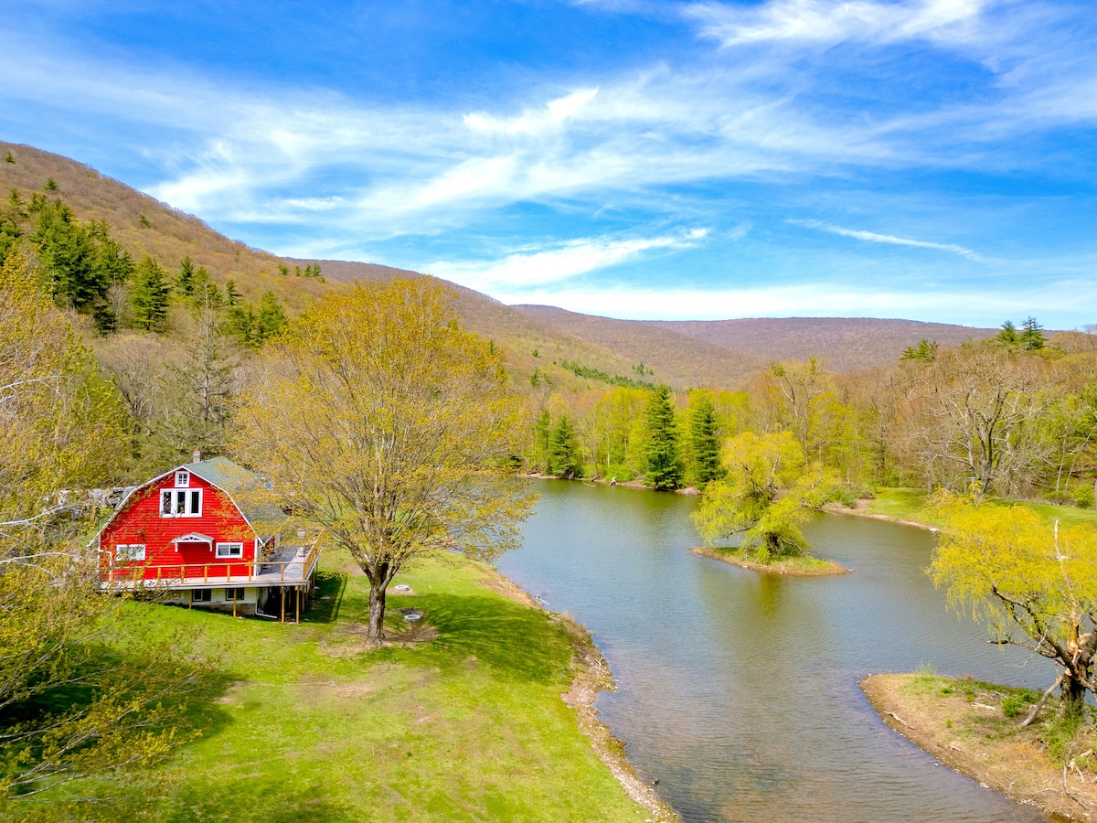 Enjoy expansive views of the Catskill Mountains from this stunningly renovated Scandanavian barn. Featured in more than 10 magazines and catalogues, including AirBnB Magazine! Walk the property, with its big open fields, an organic orchard, walking paths, and flower gardens. A large private pond is swimmable (after heavy rains it does get muddy). The Barn has central heat and air conditioning. A full bathroom features an antique bathtub. Enjoy dining inside, or outdoor grilling and dining.