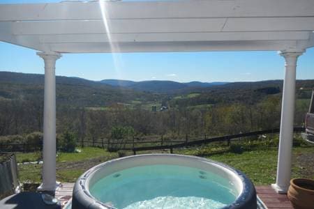 Cliff Top retreat with a one hundred mile view of the Shawangunk's and the Catskill Mountains, surrounded by thousands of acres of ancient forest. Conveniently located in the Hudson Valley Wine and Orchard country. Twenty minutes from Beacon and New Paltz. Furnished with mid-century and 18th century period furniture and art work, yet with all the modern conveniences. Uber and Lift an easy five minutes away. The ancient forest contains many Stone Age rock shelters and calendar sites.