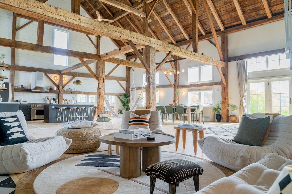 A private hilltop oasis in nature. Newly renovated barn with some luxury amenities including sauna & outdoor firepit & movie theater screen & hot tub & stock tank pool on a 15-acre hilltop w/ views & privacy in Hudson Valley / Berkshires. Fully stocked for cooking & tons of games. Near great shops & restaurants in Hudson & Great Barrington. We can point you to the best people to book for private massages or yoga classes right at the house.