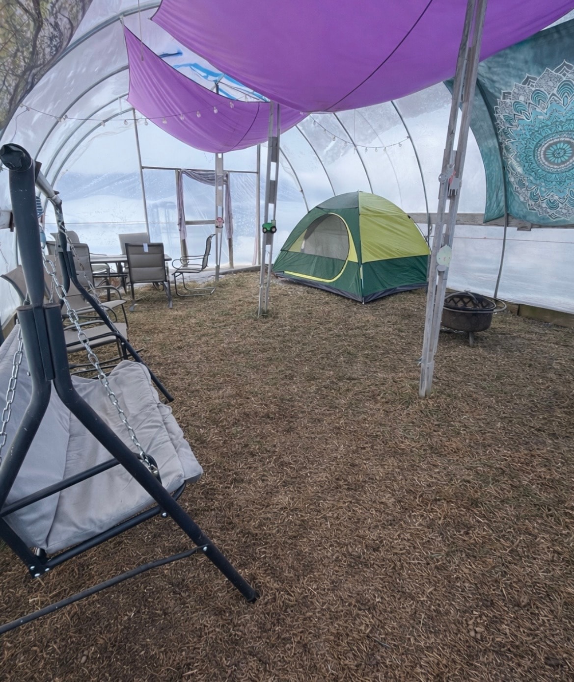 Nestled in the woods, The Porch is a peaceful, private retreat—a cozy canvas tent with two porches and an outdoor shower beneath the trees. Located on 5 acres shared with a family homestead, it’s surrounded by wildflowers, gardens, and a roadside farmstand out front. Enjoy optional add-ons like farm tours, U-pick harvest baskets, and photoshoots. Evenings glow under string lights with a fire pit and games. Overlooking the Susquehanna River, canoe/kayak access just a couple a minutes away.