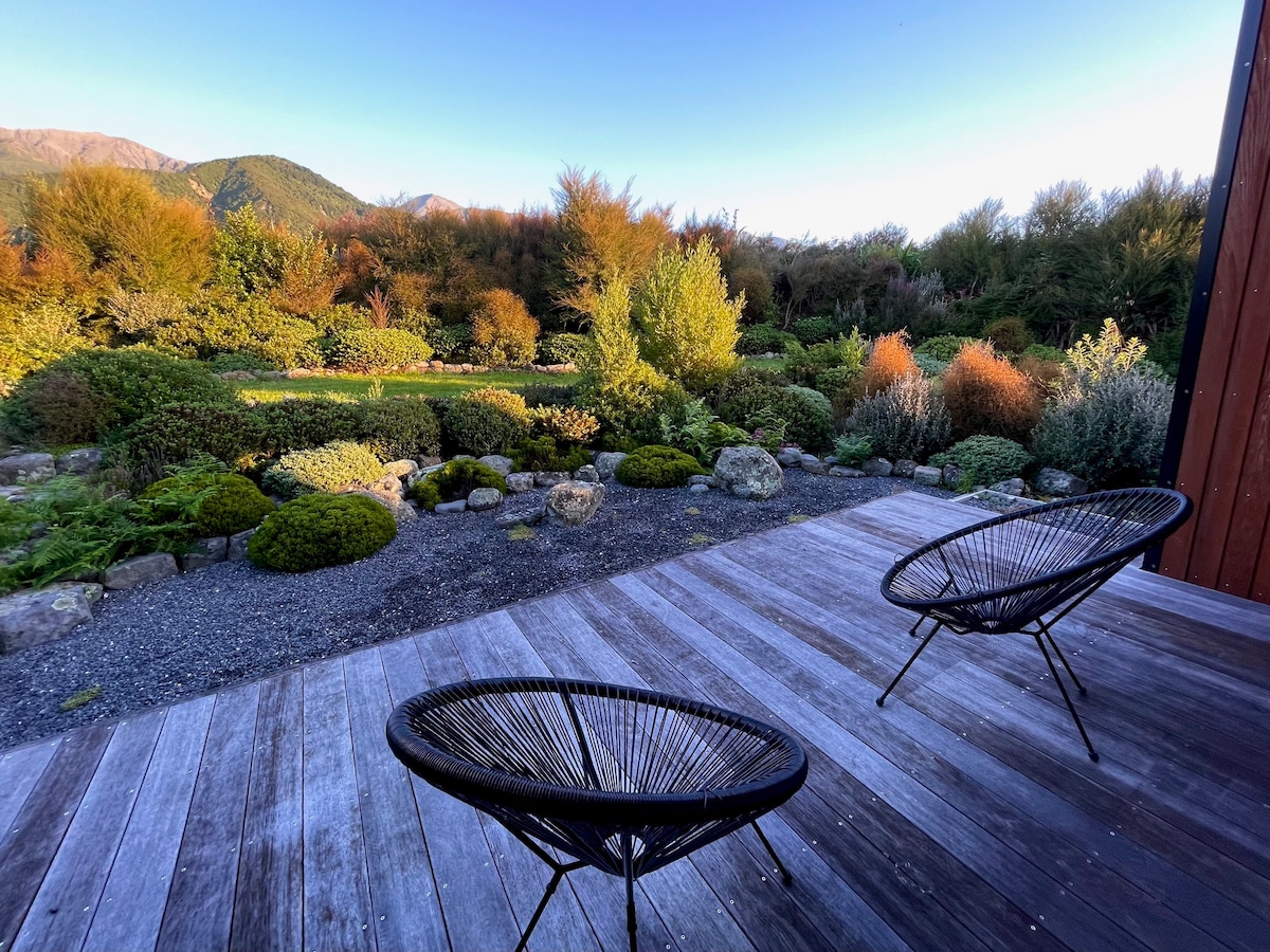 Black Mountain is nestled in the foothills of the Kaikōura Seaward Ranges, 6 km north of Kaikōura township. Designed for short and longer stays, the home is private, peaceful, and set in a beautiful rural landscape. The bedroom, living and dining spaces, bathroom, and deck enjoy mountain and garden views, with glimpses of the ocean from the grounds. On arrival, you’ll find a small selection of freshly prepared provisions — enough for a simple breakfast or two, with our compliments.