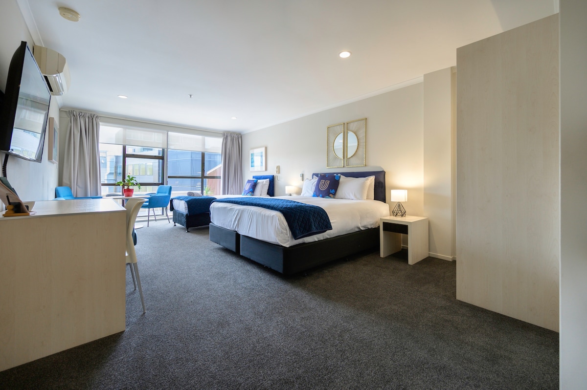 Situated near central Auckland, Boulevard Hotel is an optimal location to explore what this city has to offer. With attractions such as Auckland Museum, One Tree Hill and the CBD all in close proximity, this place is ideal. Each room is secure and accessible by keycard and well equipped with basic essentials. Bedroom 1 - Twin double bed; 2 Beds Bedroom 2 - Superking bed; 1 Bed