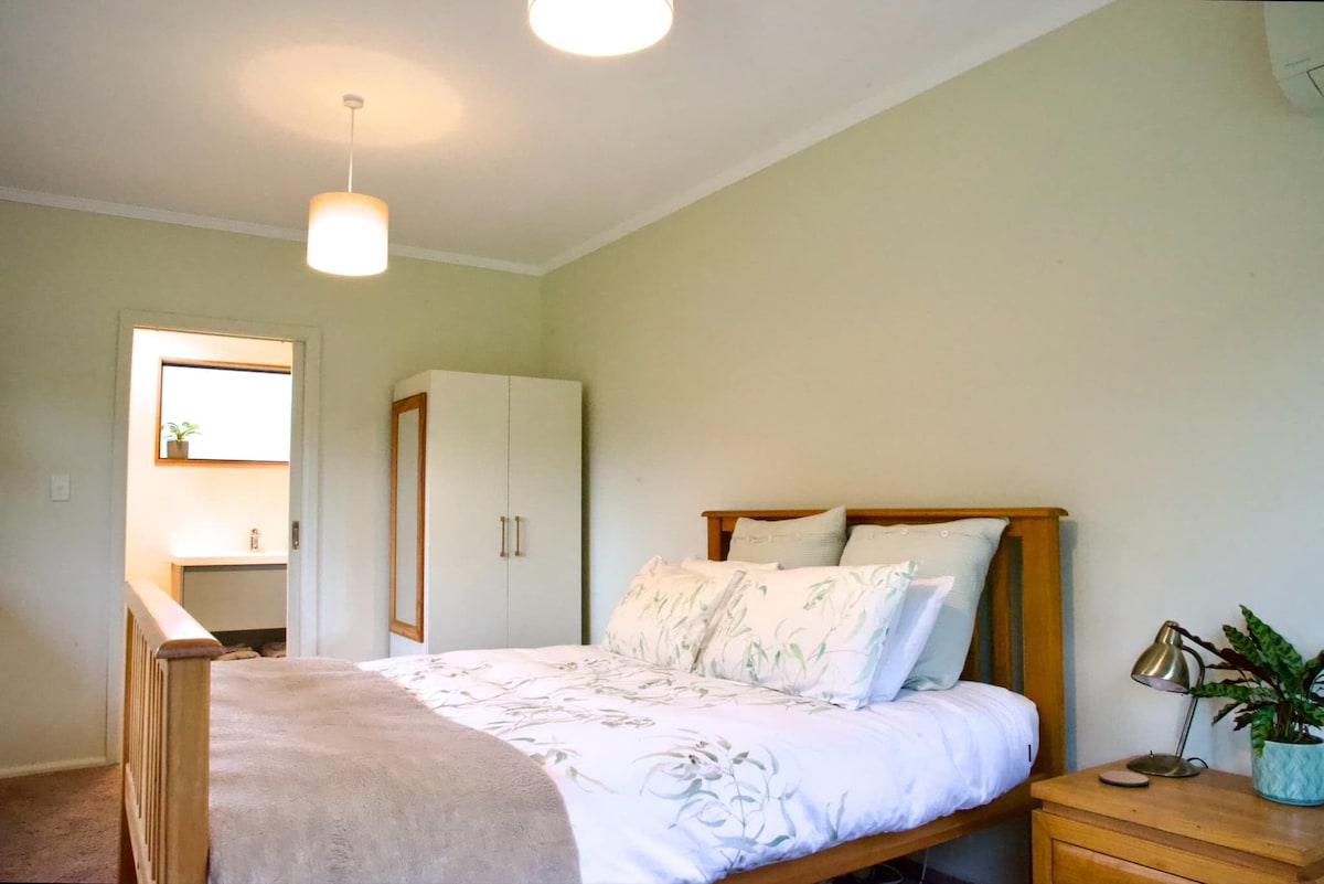 Welcome to our peaceful escape location. Just 60 minutes from Wellington, your private suite overlooks Lake Wairarapa and is surrounded by farmland, bush and lake views and includes your own private spa and gardens - a perfect place to escape, gaze at the night sky, and relax. Single nights available Sunday-Thursday, no cleaning fees, a light breakfast is included, and a kitchenette and covered BBQ are available for self-catering. ** not suitable for children or pets **