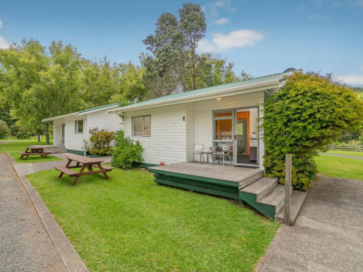 This family bungalow is 62m2. Contemporary decor and ambience flowing out to a deck in a private bush setting to enjoy the loads of birdlife including kiwi and North Island weka. Self contained with two full sized bedrooms, one with queen bed and the other with 2 sets of bunks. All linen and towels are provided. Deck and outdoor seating, lounge, heater and sofas. Full kitchen with oven, hotplates, fridge, microwave, crockery and cutlery. Bathroom. Car and boat parking.
