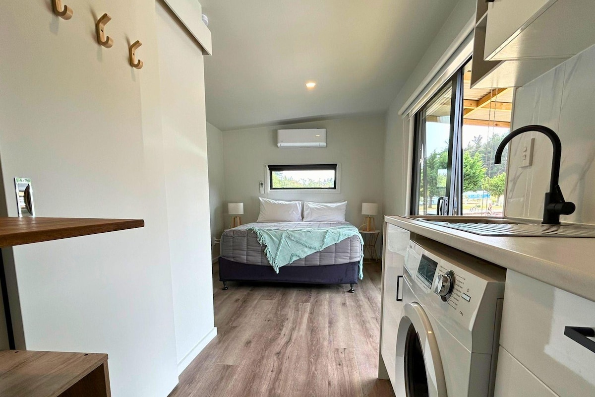 Our sweet little log cabins are both quaint and cosy. Perfectly suited for one or two people to enjoy an East Coast experience. Accommodates up to 2 people Cosy queen sized bed Plush, quality linen, duvet, pillows, and towels Includes fridge, kettle, toaster, cutlery, glassware, and tea facilities Deck with sea views Communal bathrooms, kitchen, and laundry nearby Pet-friendly by arrangement (check out our dog policy) Don’t include access to spa nor sauna