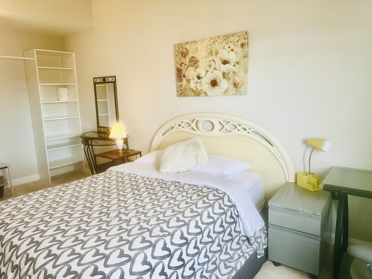 我们的独立屋位于交通便利的Bart 站附近,房间宽敞明亮,有一张双人大床,床头柜,书桌,椅子,衣橱。二楼有洗衣房,提供洗衣机、烘干机。厨房有冰箱、洗碗机、烤箱、微波炉、面包机、咖啡机、烧水壶以及餐具和炊具。交通便利,步行十分钟到Bart 站、华人超市、购物商场、餐馆等,是旅行人士,学生和上班族的理想选择。