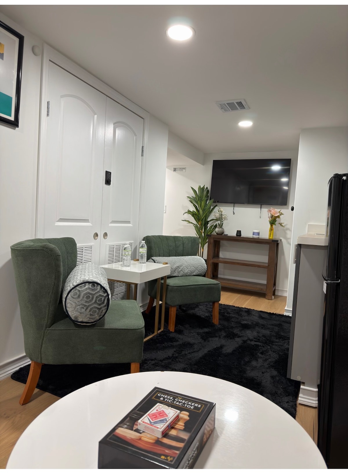 This space is ideal for business travelers, families visiting the NYC area, or just a get away for you and that special someone. Just 8 minutes from Newark airport, it offers all the comforts of home. Our one-bedroom apartment features a full kitchen and walk-in shower, with a Queen bed and two sofas for relaxation. Let our space be your home! We also welcome small events such as dinners and small parties, see house rules or inquire through chat for rates!