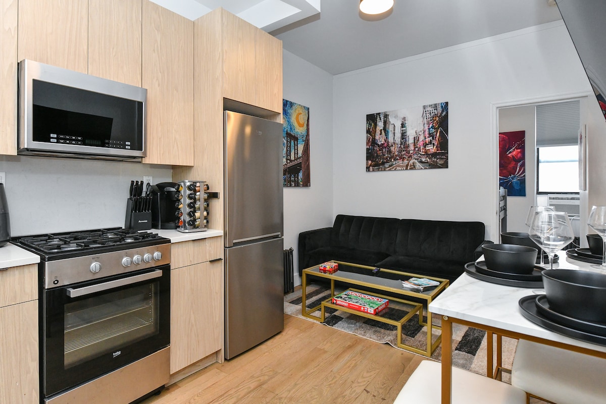 Welcome to your stylish and comfortable home in one of NYC’s most vibrant neighborhoods. This thoughtfully designed apartment offers the perfect balance of space, convenience, and comfort—ideal for families, groups, or business travelers. Note: 3rd bedroom is semi-private with a curtain (no full walls). Perfect for groups, families & work trips.