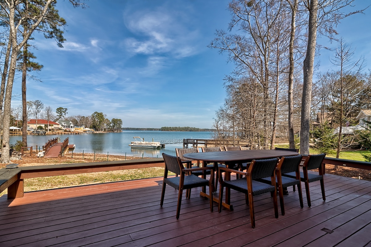 Welcome to 'Sunshine and Naptime' - This newly renovated home is located on the Chapin side of Lake Murray. The entire house is newly furnished and full of amenities. This 3 bedroom lakefront cottage sits on a point with 180 degree panoramic views. Vaulted rustic pine ceilings showcase the wall to wall windows for a view that will take your breath away. You can watch the sunrise AND sunset from the living room or 600 sq ft deck. There is a hot tub, 2 kayaks, shuffle board & private dock.