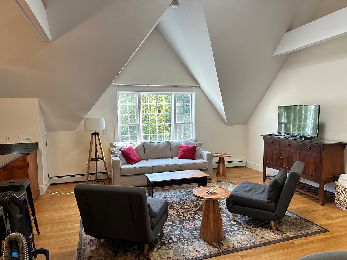 Just minutes from town yet in a quaint residential neighborhood, the apartment attached to our 1820 historic home is a warm and inviting place to stay while visiting lovely New London, New Hampshire. The town includes many shops and restaurants, along with Colby Sawyer College and The New London Barn Playhouse. Minutes from Little Lake Sunapee and Pleasant Lake, both with beach areas and boating access for summer visitors, and close to Mts Sunapee, Kearsarge and Ragged, for hiking and skiing.