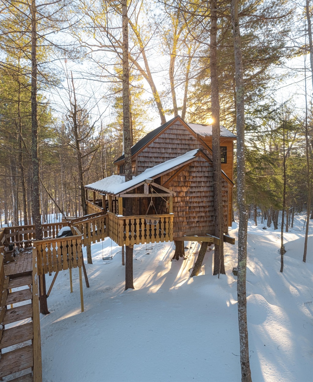 Welcome to Sugar River Treehouse! If you’re looking for serenity, peace and quiet, in the most unique, breathtaking, beautiful setting, you have found it. On top of the trees, overlooking the Sugar River in the quaint town of Newport, NH you will find plenty of year round activities including swimming, floating, fishing on the beautiful, clear Sugar River, right outside the back door. You will find the treehouse sits up in between 2 beautiful northern hemlocks and is fully equipped inside.