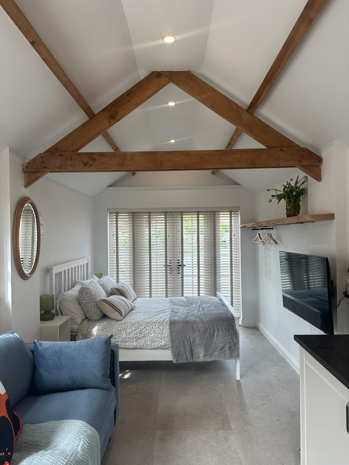 We offer guests a contact free stay in our detached studio suite in the Lake District.To refresh the studio and to complete intensive cleaning we block off a day either side of every booking. The studio has a king-sized bed, dining table & chairs, a very comfortable sofa, TV, lobby, wet room, small kitchenette with mini-fridge, microwave, toaster, tableware, cutlery. Patio doors open on to a private sun terrace overlooking the garden and surrounding fields. Parking next to the studio.
