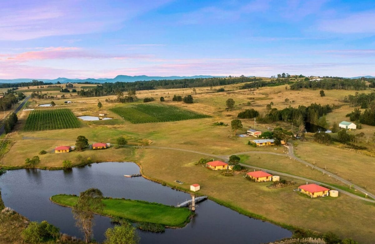The Villas: - 60m2 Open Plan Studio, Luxury King Bed - Large Sofa, dining table and sitting area - 1 private bathroom - Kitchenette - Fully equipped kitchenette supplied with utensils to cook on stove top - Communal Pool (not heated) - Baby Webber BBQ The Farm: - 2-hour drive from Sydney - 1-hour drive from Newcastle - 15 minutes from Polkolbin Included: - All linen including sheets, towels, blankets professionally laundered - Professionally cleaned - Access to Pool, sauna & hot tub