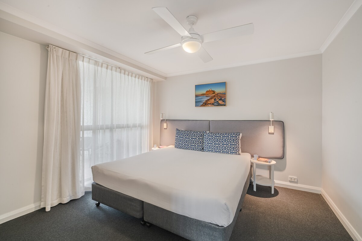 On 8th level of beach side, offering sensational views of Newcastle Beach, the iconic Ocean Baths, Nobbys Head & beyond. Moments to great eateries & bars. The encl. balcony offers the perfect view, as the sounds of the ocean soothe your soul. While watching the waves, whales, dolphins & action. The bedroom provides ocean views, you'll have to tear yourself away from. Deluxe, Arms of Morpheus by Doma Q-bed & remote cont. roller blind.