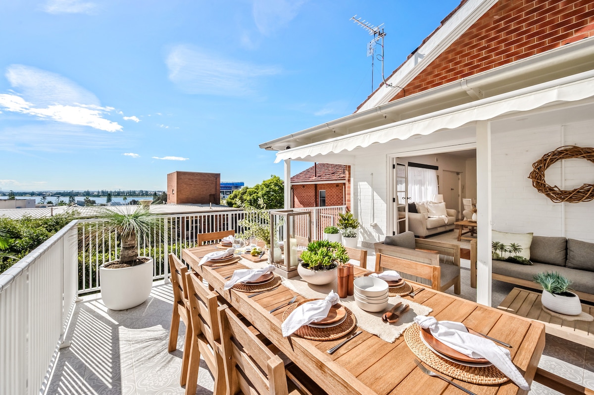 "The Rooftop" Nestled in the heart of Newcastle CBD, this luxurious unit overlooks the stunning Newcastle Harbour. An entertainer's delight with a huge rooftop deck, 8-seat dining table and outdoor lounge area. 2 bedrooms that easily sleeps 4 adults and an option for a 5th person to sleep on a blow up mattress with bamboo topper. 600m from Newcastle Art Gallery. Only a short down hill walk to all of Newcastle's best pubs, restaurants and bars.