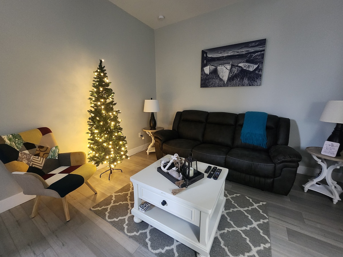2 bedroom accommodations. Located in a little fishing village just a few minutes walk from a beautiful sandy beach, grocery store, bakery/coffee Shop and only 25 min from the ferry to Newfoundland. Suite has a fridge,stove,microwave, and a quiet setting area. Free Wifi, fibre TV, washer/dryer available upon request. Fresh baked muffins upon arrival and help yourself to toast,homemade jam,coffee/tea breakfast. Charging of electric vehicles is available at an extra fee.