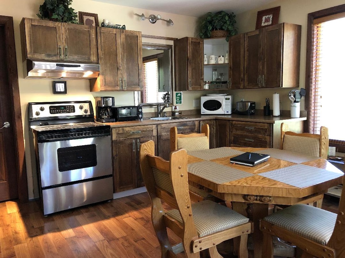 Enjoy a stay in one of our suites. This is the only suite which has 2 queen beds Just a few minutes from the ferry. Our suites have fully equipped kitchens and dining room tables. So you can prepare your own meals. We supply pots, pans, utensils, dishes, glasses, and cuttery. We even supply the dish soap! You will also find the comforts of home like a keurig machine with coffee/tea, kettle, microwave, toaster, and even air fryer.