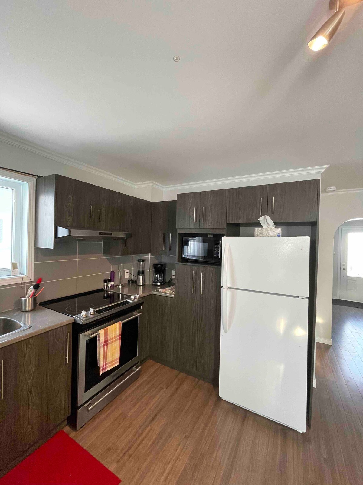 This bright, spacious apartment is in the heart of Corner Brook, less than a 5 minute walk from local breweries, restaurants, and a short drive from the local hospital and other amenities. Bedroom sleeps 2 and has sofa bed in living room to sleep 2 more. The kitchen is equipped with a stove, fridge, kettle, coffee maker, and microwave. Dishes and utensils are included as well. Free overnight parking in driveway. Free street parking and free parking across the street in the church parking lot.