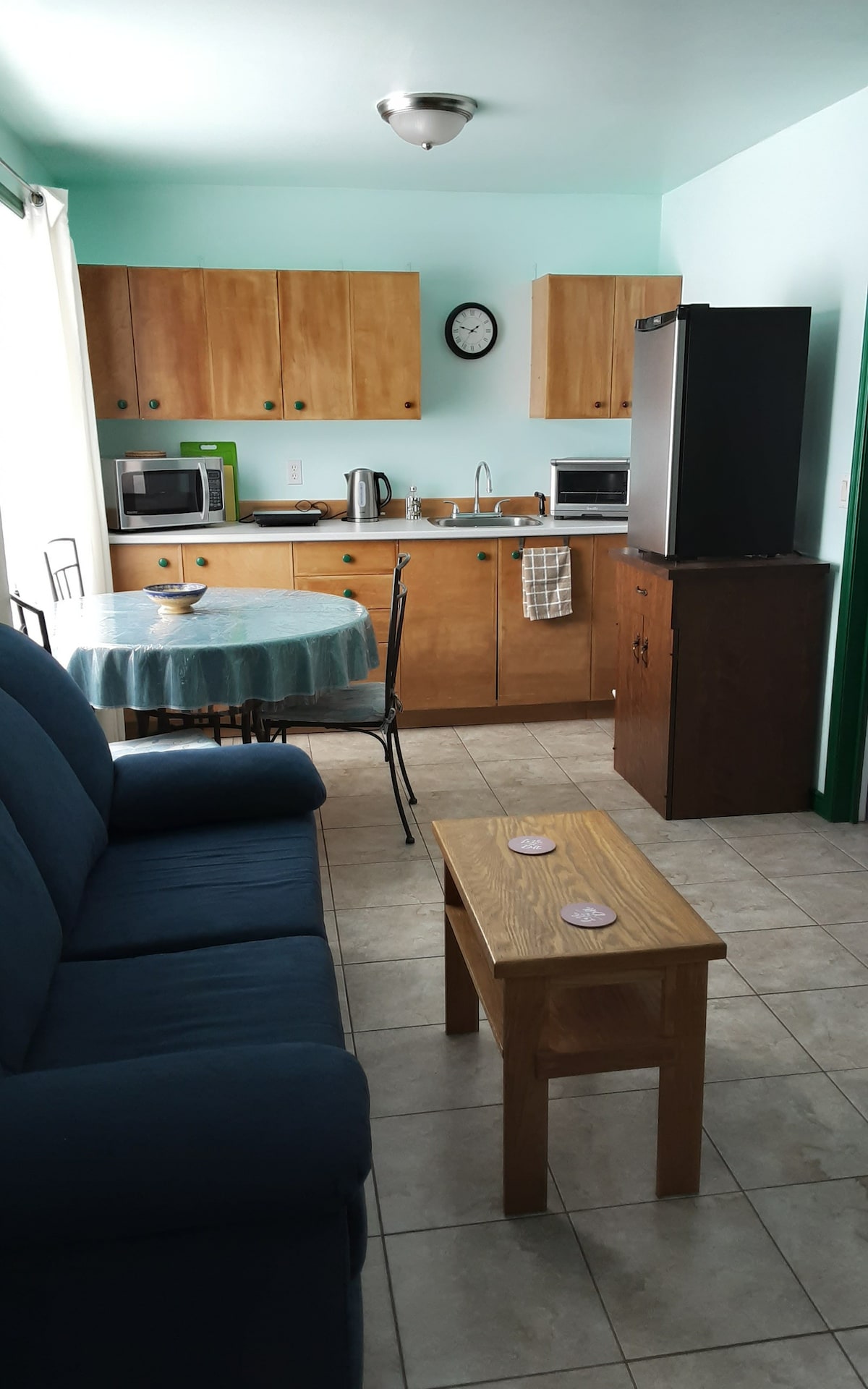 2 bedroom accommodations. Located in a little fishing village just a few minutes walk from a beautiful sandy beach, grocery store, bakery/coffee Shop and only 25 min from the ferry to Newfoundland. Suite has a fridge,stove,microwave, and a quiet setting area. Free Wifi, fibre TV, washer/dryer available upon request. Fresh baked muffins upon arrival and help yourself to toast,homemade jam,coffee/tea breakfast. Charging of electric vehicles is available at an extra fee.