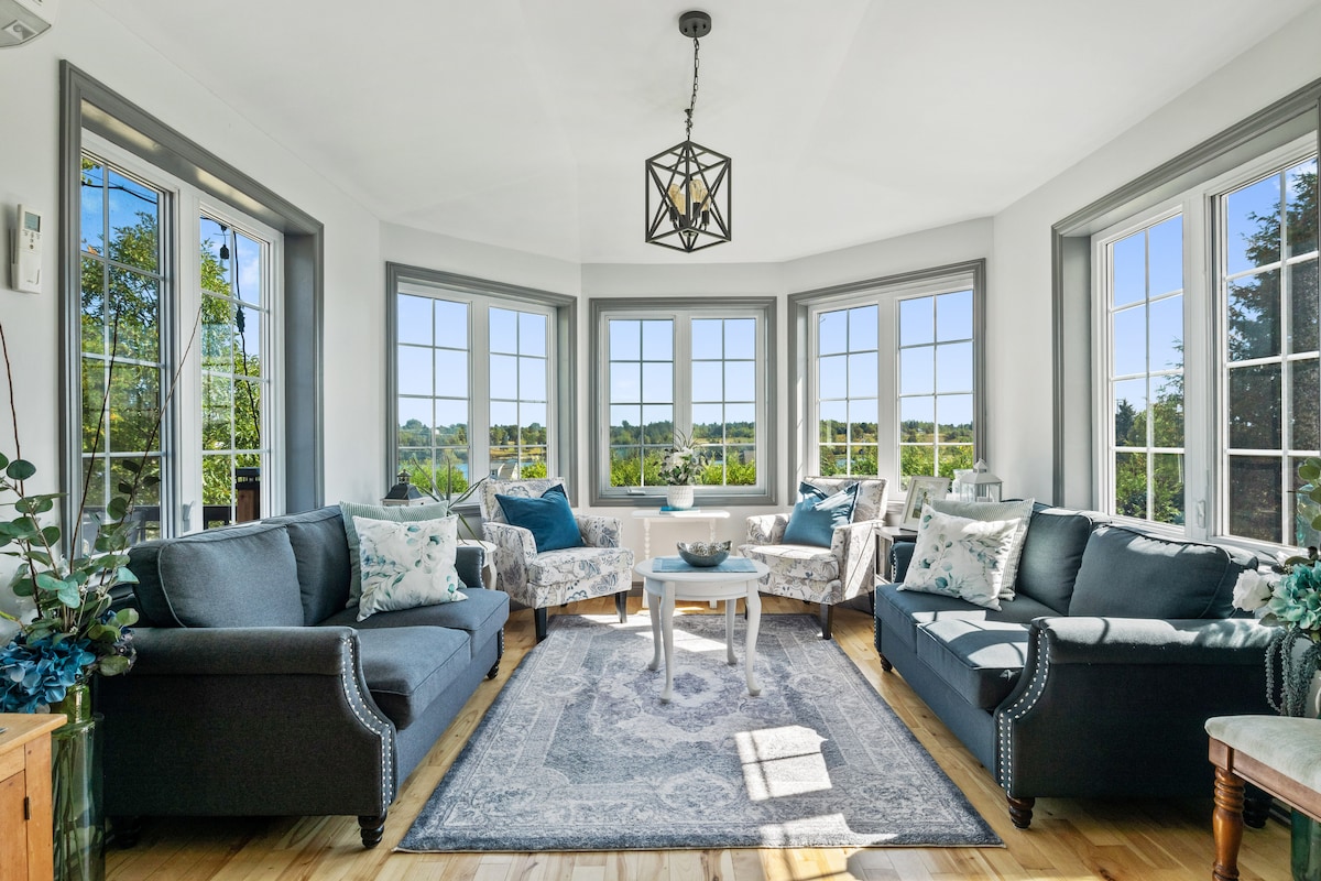 Welcome to your perfect, private, cozy, family friendly, newly renovated, four season, modern farmhouse, for a large family, or two, or group. King bed on main level. This home overlooks the Kouchibouguac River, where you can canoe, kayak or boat. The entertainers deck stairs lead you to the custom made fire pit, get your s’mores & hot chocolate ready & star gaze. New Nordic Spa for your health and enjoyment. Please ask you host for details: Hot tub, cold plunge and sauna close to the property.