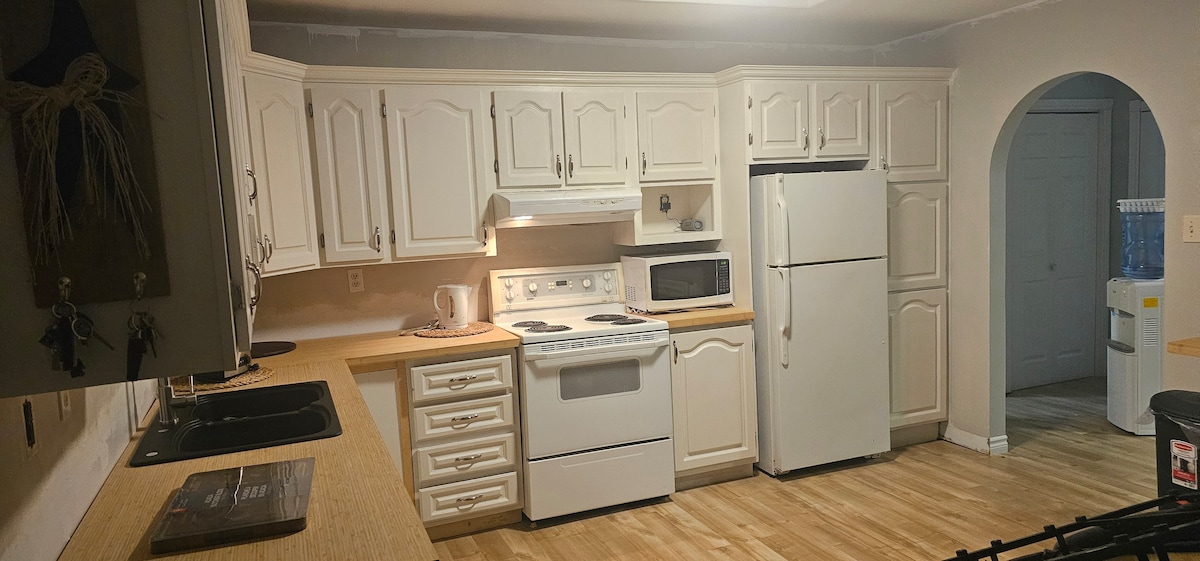 Sleeps 6 Very Private. 5 mins to AIRPORT, 40 mins from MARBLE MOUNTAIN and GROS MOURNE, 5 mins from INSECTARIUM and BEACH. Can access SNOWMOBILE trails from the house. There is a fully equipped kitchen & washroom, washer & dryer, private decks, office desk, FIBRE opt internet,Bell TV, & PLAYGROUND. The loft has two twin beds,one queen bed, and Bell TV. Downstairs bedroom has a queen bed. Pack & Play, books, & toys for the litte guests. Loft not suitable for small children without supervision.