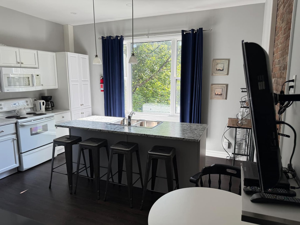 2 bedroom accommodations. Located in a little fishing village just a few minutes walk from a beautiful sandy beach, grocery store, bakery/coffee Shop and only 25 min from the ferry to Newfoundland. Suite has a fridge,stove,microwave, and a quiet setting area. Free Wifi, fibre TV, washer/dryer available upon request. Fresh baked muffins upon arrival and help yourself to toast,homemade jam,coffee/tea breakfast. Charging of electric vehicles is available at an extra fee.