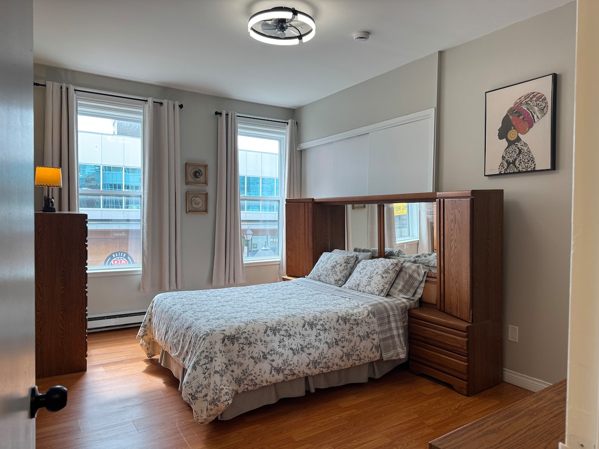 Fantastic 3rd floor Penthouse apartment, amazing view of St. John's. Very bright/ tons of light. Stunning Sunrises. Best view in the city - see Signal Hill, the ocean, the downtown, South Side hills, Jellybean Row. Very unique, historic and cool vibe in the A1C postal code which has the most artists in Canada. Open concept studio. Includes a deck, great for eating breakfast, lunch, window seat for sleeping/reading, laundry, air tub, lots of light, piano, so much more.