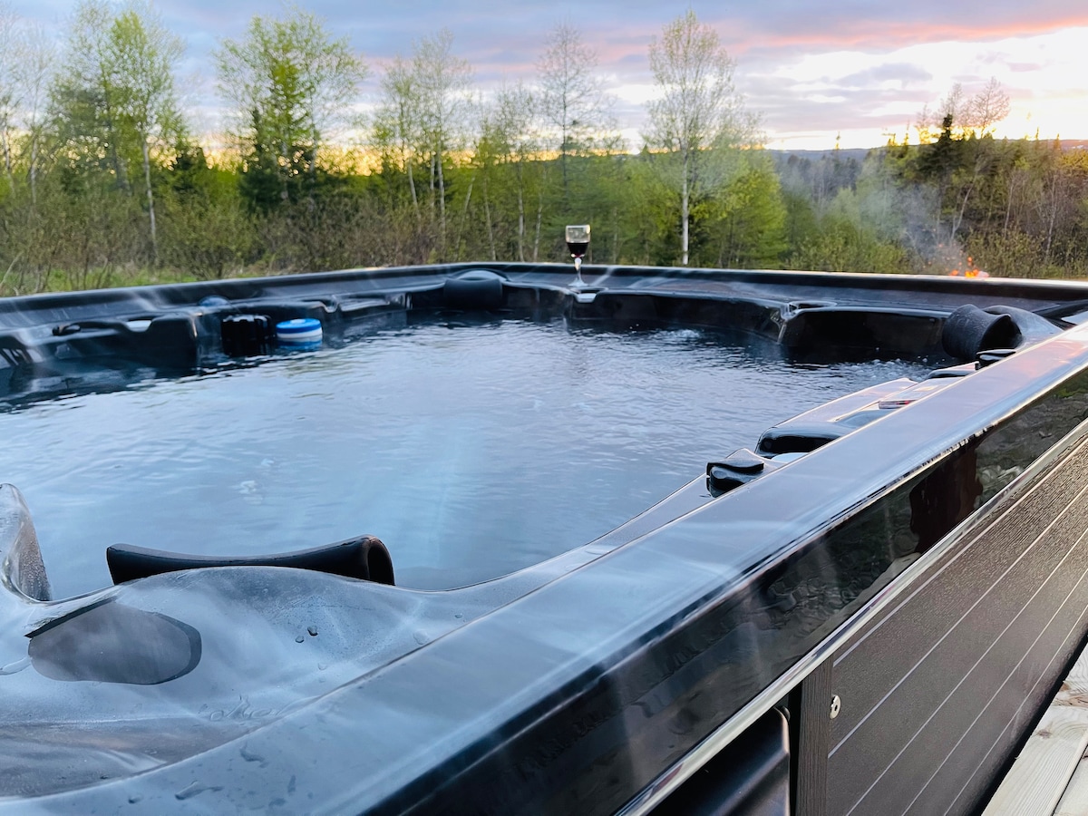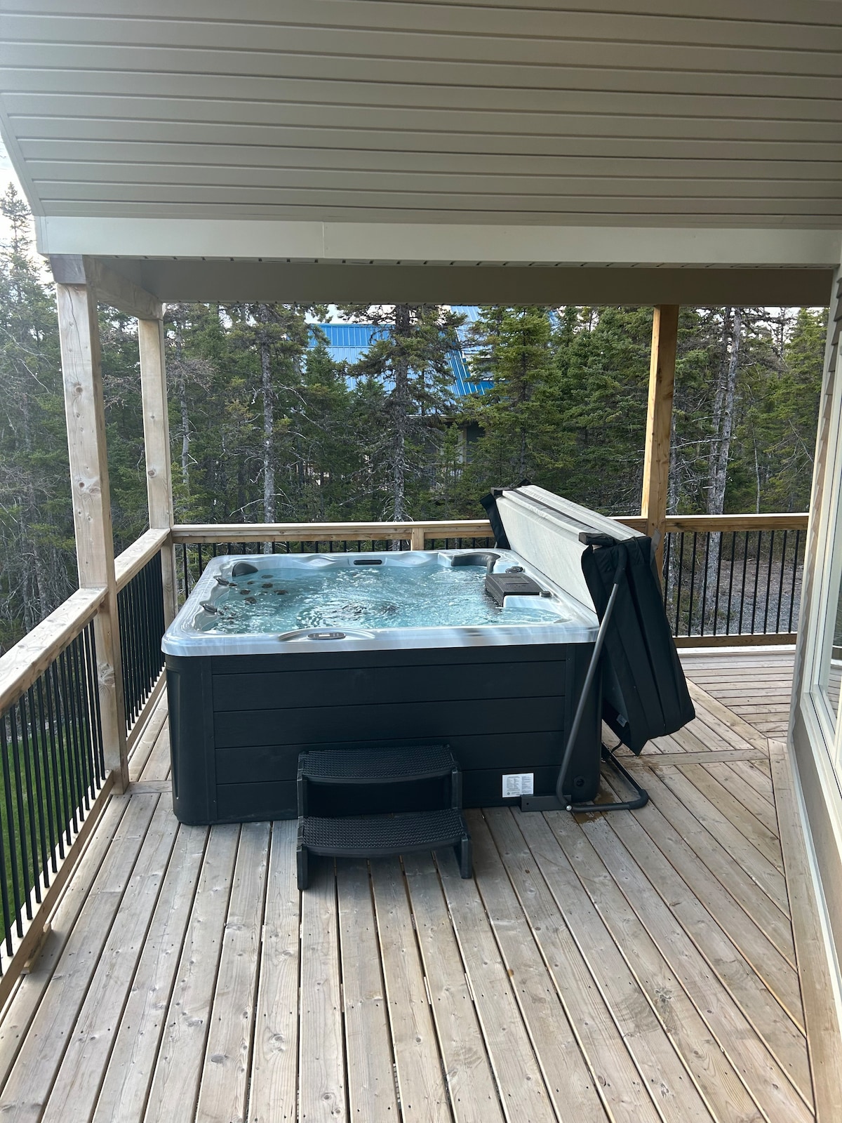 A beautiful new 3 bed/2 bath Chalet located in picturesque Port Blanford. Just minutes from Terra Nova National Park and the famous Twin Rivers golf course. Designed for all seasons, this Chalet has a large fire pit and a private hot tub to sooth your aching muscles after long hike or a day on the slopes. Equiped with high quality furnishings and bedding. This Chalet has a master with queen bed and full ensuite, plus loft sleeping consisting of two sets of twin over double bunk beds..