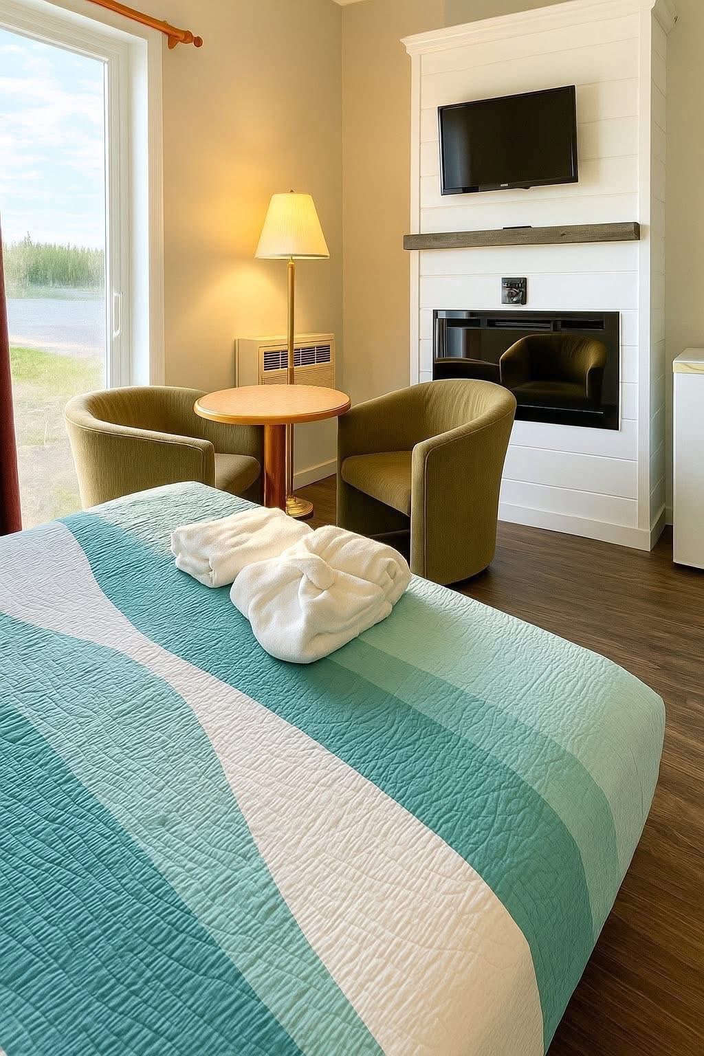 Suite 9 at The Castaway Resort Relax in our comfortable suite featuring two cozy double beds, a spacious sitting area, large bathroom, and a coffee & tea station with complimentary snacks. We’re the closest hotel to the Red Bay UNESCO site and just 30 minutes from the Labrador ferry—perfect for solo travelers, couples, or families looking for a convenient and welcoming stay.