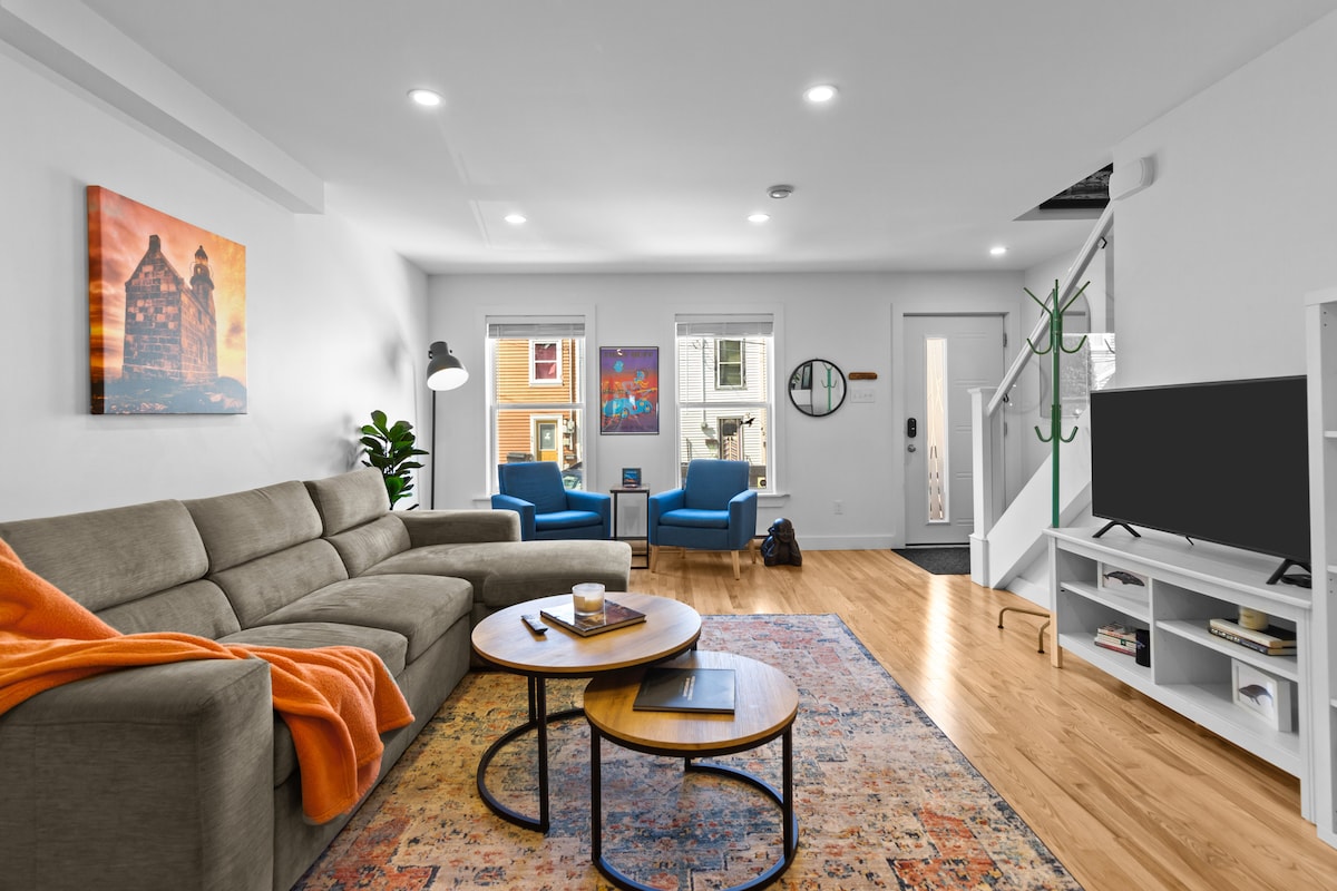 This spacious jellybean row house puts you just a couple of blocks from downtown restaurants & gift shops, plus it's closer to George Street than the popular Sheraton Hotel. Also steps from lovely Bannerman Park, which features plenty of grassy areas to lounge on, a splash pad, free swimming pool, modern playground, canteen, plus an ice skating loop in the winter. It's a best-of-both-worlds location, both quiet and close to the park, but only a 10-15 minute walk from all the downtown nightlife!