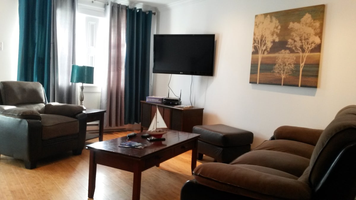 Our place at Riverside Landing is a beautiful three-bedroom two story fully renovated duplex waiting to host you. Situated directly across from Orcan River, known for its fascinating reversing tides, our home promises fantastic water views from every room. We are within walking distance of local museums, restaurants, stores or local pubs. A fitness facility/Pool . Hike the trails to Castle Hill Historic Park . Marine Atlantic is just a short drive PRICE CAN BE MODIFIED FOR ONE COUPLE. INBOX