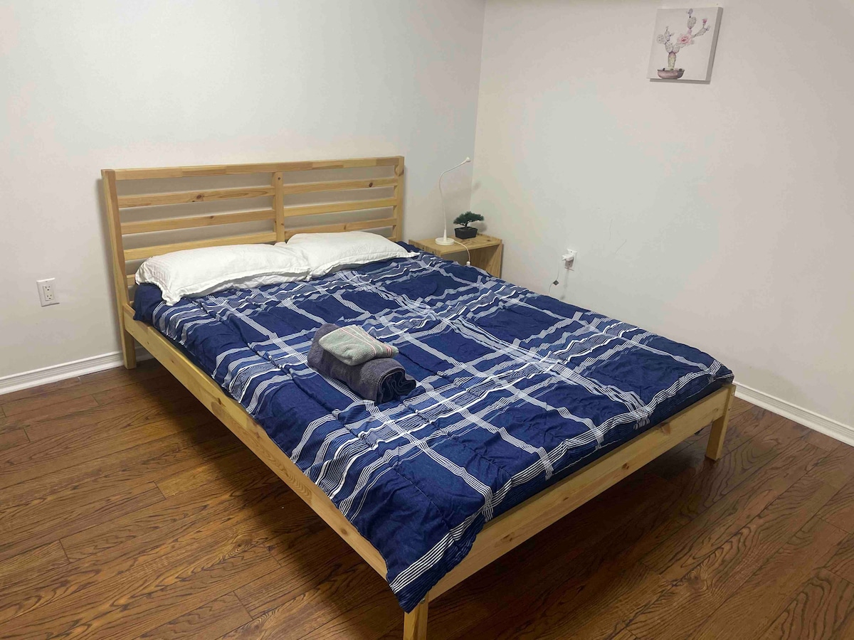 Welcome to our comfortable unit located at the intersection of Yonge and Savage Rd in beautiful Newmarket. We offer the perfect blend of elegance, comfort, and convenience to ensure a memorable stay. Enjoy a private entrance, a luxurious king-size bed with premium mattress and bedding, and a prime location just a 5-minute walk to Yonge Street, the bus station, and nearby amenities, including shopping, dining options, and a beautiful nearby walking trail!