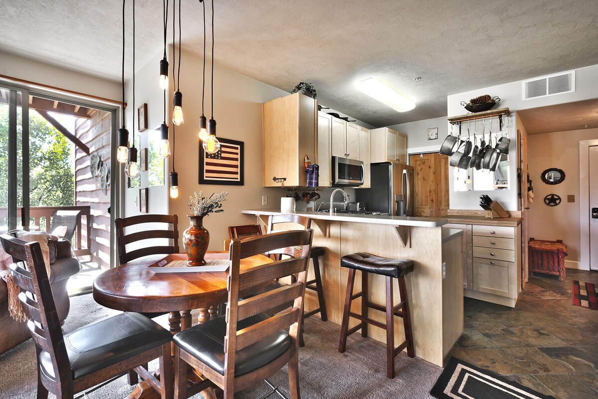 Get ready for all season adventures in the heart of Old Town Park City! This 2 bedroom / 2 bathroom condo (sleeps 6) is just steps from Park City Mountain’s Quit ’N Time run and Main Street’s dining, shops, and nightlife. Unwind with a full kitchen, private patio + BBQ, central A/C, and in-unit laundry. Stay connected with 600+ Mbps WiFi and remote-friendly work spaces. Enjoy off-street parking for 2 vehicles and thoughtful touches throughout that will make your mountain getaway unforgettable.