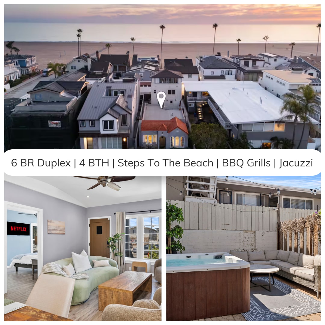 This vacation home is 2 MIN WALKING distance from the OCEAN, sand, famous NEWPORT PIER, shops, restaurants, BLACKIES BEACH- known as the TOP 10 best places to learn to SURF in the WORLD, and boardwalk of Newport Beach. Partial OCEAN VIEW from the kitchen, living room, and balcony. 2 parking spaces. AC every room. 1200 Square Feet of living space. Air Hockey Table, Brand New BBQ on the front BALCONY, in the middle of all the fun and excitement! Many Restaurants within 2 min walking distance!