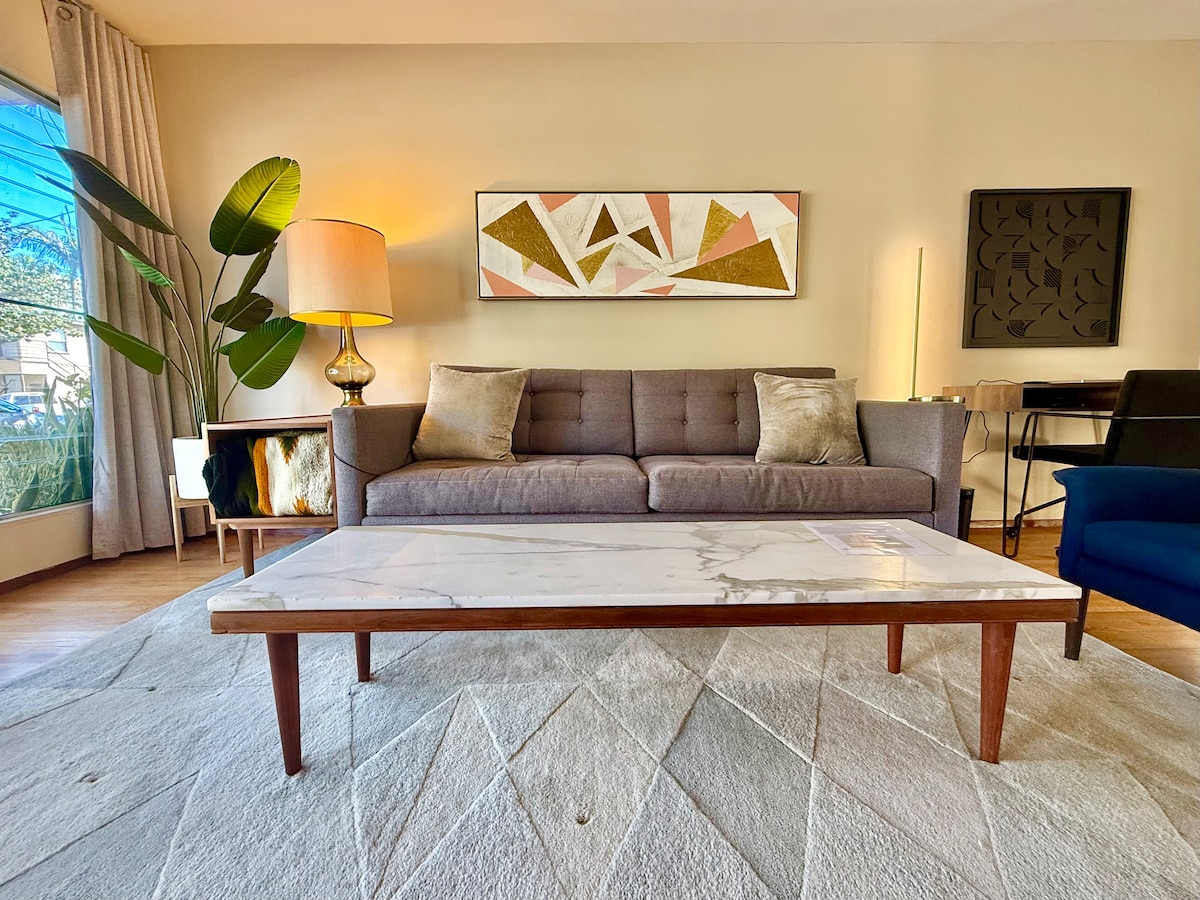 Walking distance to Convention Center, the Pike and the Aquarium, and a few minutes from the Cruise Terminal/Queen Mary, this luxury 1-bed/1-bath condo has a separate living & dining room; bathroom, and sectional that folds out to a queen sized bed. Steps to beach. Super easy access to LA and Orange County with public transit. It is street parking only which is very tough. Recommend no car or overnight parking at nearby hotel. Unit has forced air conditioning/heating. 20-30 miles to FIFA.