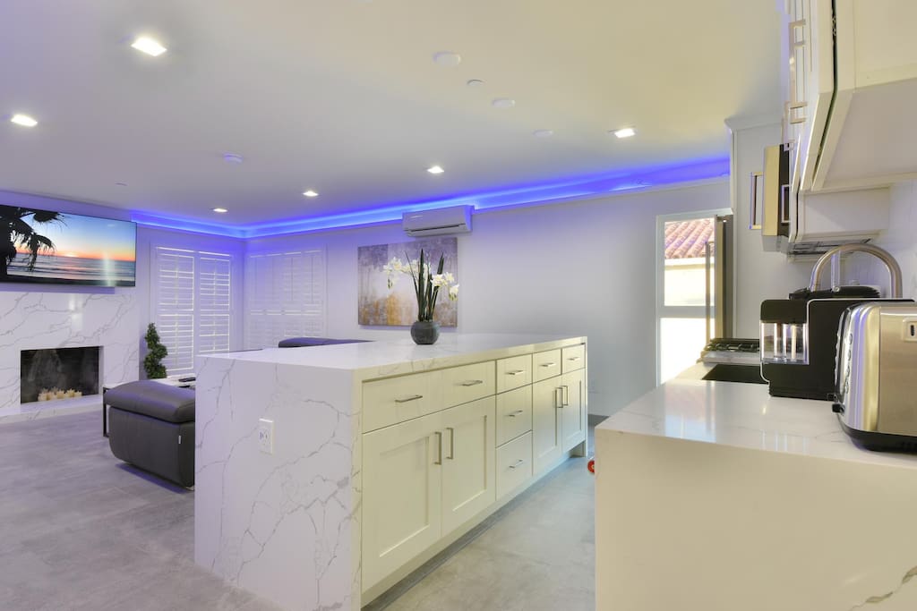 It truly feels like HOME. Open-concept kitchen stocked for short or long stays. Spacious living room with L-shaped couch and cozy recliner chair. 65” Smart TV ready for your logins. Kitchen island + 3 bar stools. KiNG bed, Smart TV, big dresser, and bench in the roomy bedroom. Fridge/ice maker. FAST WiFi. One parking spot. Always spotless and ready on time. Bring your good vibes. *Please review the entire listing.