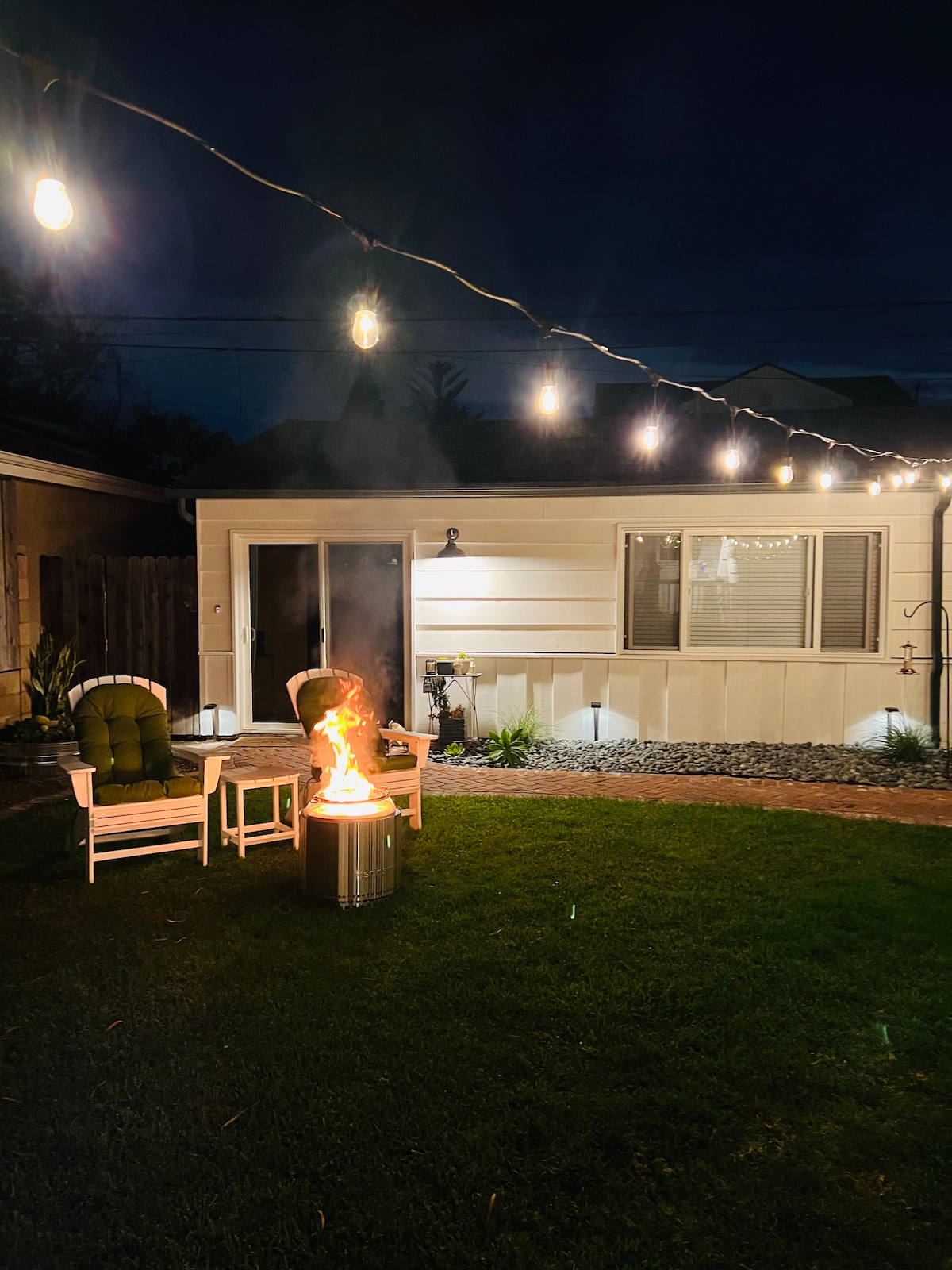 Sunny Days is a beautiful and spacious 600 sq. ft. studio apartment with a private entrance and patio. You'll love the bright and airy space, complete with 10-foot ceilings! In the evenings, relax with a glass of wine in the cozy private patio, grilling dinner on the BBQ, and hanging around the gas fire pit. We are centrally located to Newport Beach, John Wayne Airport, and Disneyland. Only a short walk to TeWinkle Park and the OC Fairgrounds. Easy free street parking in a lovely neighborhood.