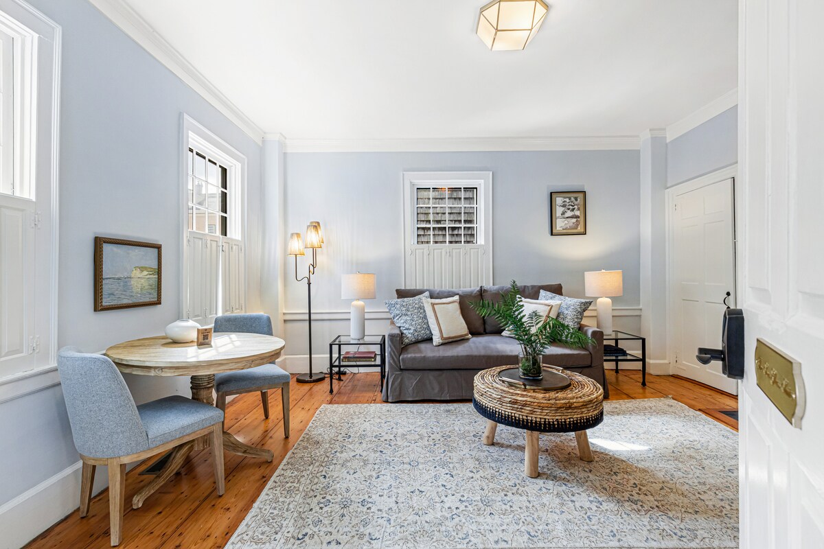 Welcome to Newport’s premier luxury suite, experience the charm of seaside elegance in our restored luxury estate. Located in the heart of downtown just steps away from Thames Street and Bowens Wharf! Putting you right in the middle of the best shopping, dining, and nightlife. Enjoy spaces like the fully stocked kitchen, beautiful backyard with a gas fire pit, and EV charging stations. Just one block from the water, you’ll be surrounded by Newport’s rich history and vibrant waterfront scene