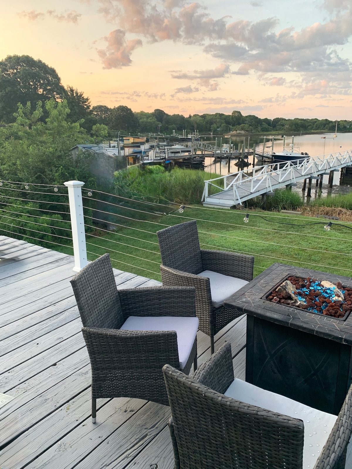 Welcome to our waterfront retreat, a perfect place to create lasting memories on the shores of the Sakonnet River. From dinners on the deck to sunset soaks in the hot tub, this home is a place to slow down and enjoy life on the water. The fixed dock allows guests to truly access the water: swim, paddleboard, kayak, grab a fishing rod, or bring your own boat, all provided. When the sun is setting, it's time to jump in the 6-person hot tub while you watch the boats cruising by.