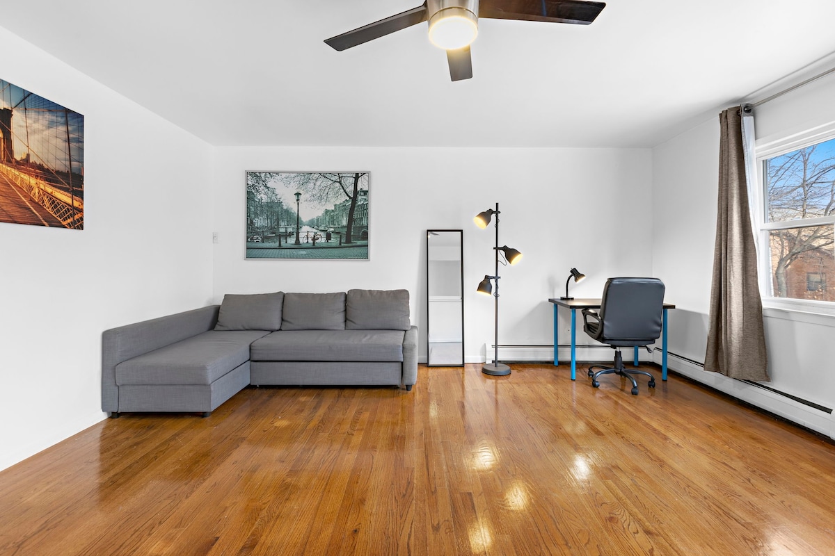 Enjoy a comfortable stay in this inviting garden level apartment featuring a bright living room, a fully equipped kitchen, and a large bedroom. The bathroom is modern, clean and well-lit, with a ceiling air vent for comfort. Guests enjoy direct backyard access—perfect for morning coffee or relaxing after a day out. Conveniently located near bus connections to NYC and minutes from Hoboken, this apartment offers a peaceful retreat for couples or solo travelers with easy city access.