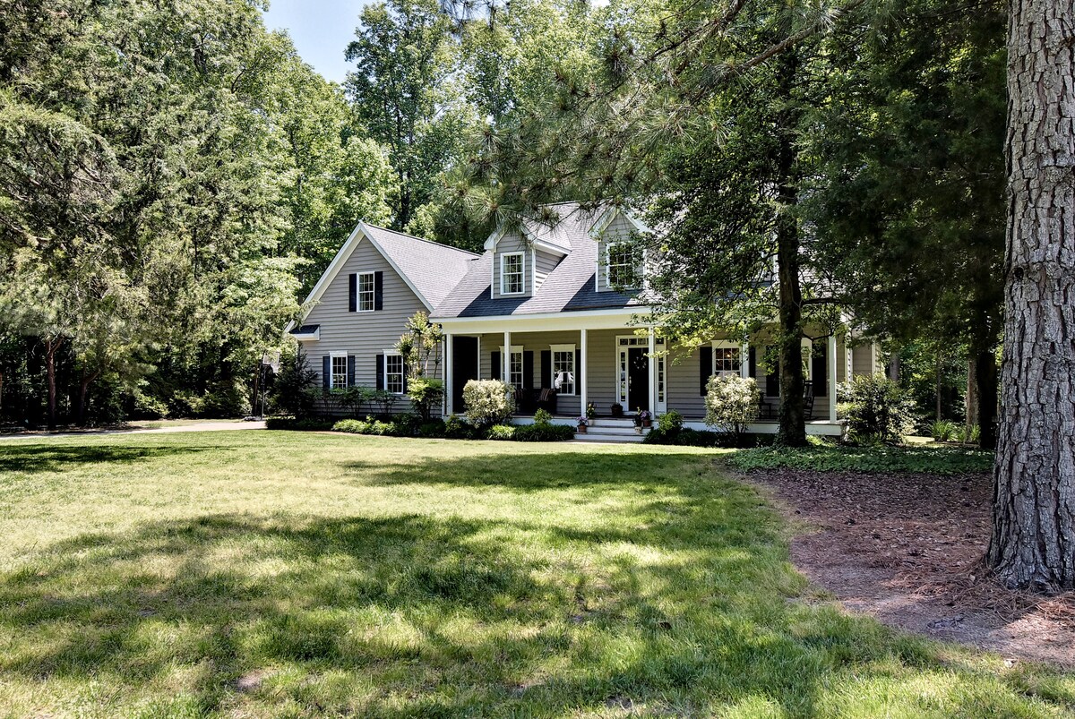 Stunningly manicured and spacious custom built colonial on 6 private acres. - Specializing in large multigenerational family vacations, business and church retreats, and discerning private getaways. Perfect for those desiring comfort, style and space. - Massive covered deck with fire table and outside dinning. Start your day here with coffee and finish it with your favorite wine. -Collect fresh eggs and let the kids run!!! -17 min. to top Williamsburg attractions. -10 min. to outlet mall ;)