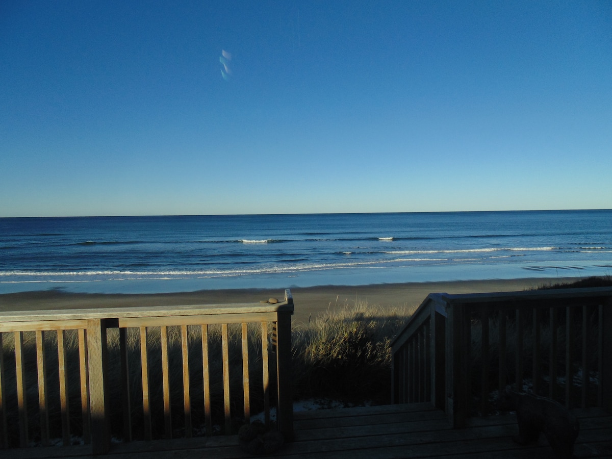 BAY/BRIDGE DECK TO SEE SUNRISE - BACK DECK TO SEE SUNSETS! GET TO THE BEACH! It is spectacular! What can I say? You will literally step off the back deck and you on the sand! This awesome home is ocean front with direct beach access and peek a boo ocean views. Sunsets are incredible and the beach is wide open for exploring. Comfortable and Cozy ~and your well behaved family dog is welcome! The home is spacious, cozy, clean...tons of amenities.