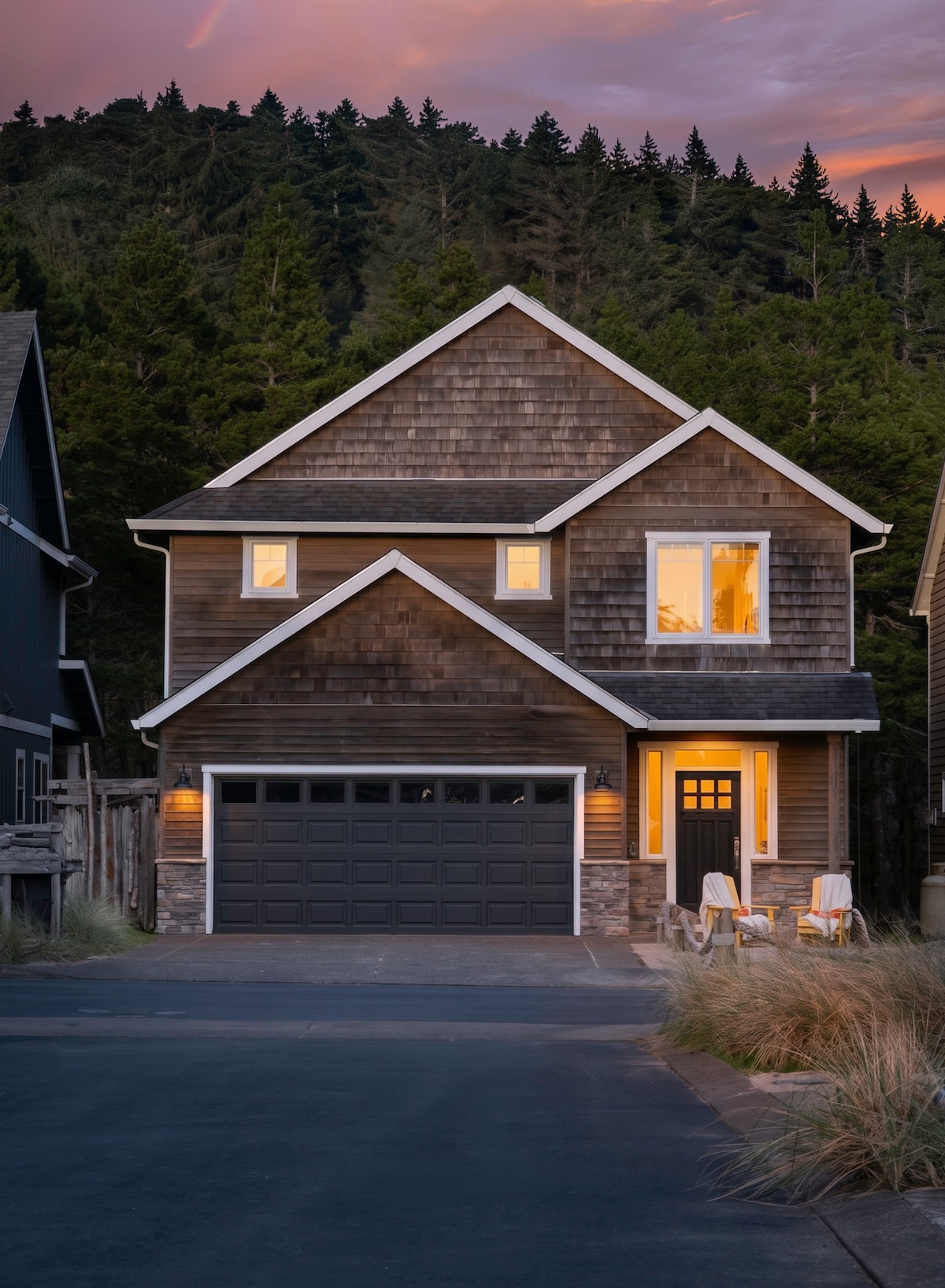 House, 4 Bedrooms, 2.5 Baths, (Sleeps 8 max) This charming home is nestled in the peaceful and private Dory Pointe development, just a short 3 minute walk to the beach. With 2200 square feet of living space, it's perfect for two families. The backyard is a kid's paradise, featuring sand toys and play structures, and it backs up to a forested area with trails. The garage is fully stocked with bikes for the whole family, along with beach chairs and beach essentials! Come relax and enjoy!