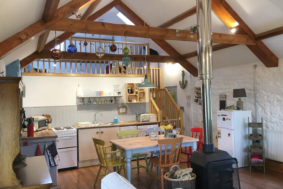 Lofthouse is a quirky old barn conversion, with an upside down layout. The cottage boasts rustic woodwork throughout, original features, vintage furniture, two beautiful gardens and almost direct access to the most spectacular coast path which leads down to a secluded beach. There are spectacular views up and down the coast from the picture window upstairs and beautiful walks minutes from the front door. With the living area being upstairs you have a magical tree top sea view from every window.
